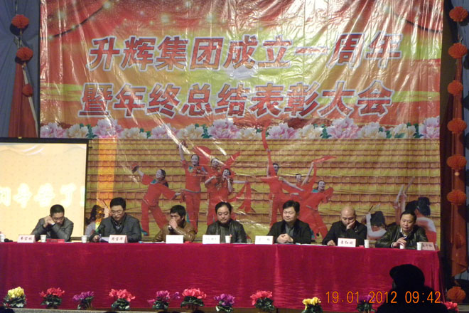 2012年1月19日,升輝集團(tuán)慶祝成立一周年職工表彰大會在白甸鎮(zhèn)人民大會堂隆重召開。總結(jié)2011年的工作,表彰2011年度各項工作中涌現(xiàn)出的先進(jìn)集體和個人,部署2012年的工作任務(wù)。