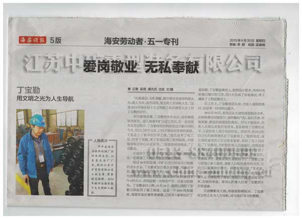 2015年2月,在海安縣十大文明職工標兵的頒獎大會上,江蘇中礦公司副總丁寶勤走上了領獎臺。主持人宣讀了頒獎詞:扎根基層,無私奉獻,做引領企業進步的排頭兵;助人為樂,亮節高風,用文明之光導航人生。人生的旅途因為有你而精彩,道德的豐碑因你而閃光。
